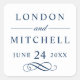Pegatina Cuadrada Clásico Elegante Monograma de Boda Azul Marino Per