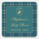 Pegatina Cuadrada Classic Plaid Polo Green Ecuestrier Baby Shower
