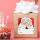 Este pegatina presenta a Santa Claus y el texto "a" y "de" para ser usado como etiqueta de regalo.