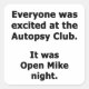 Por el amante del sarcasmo en todos nosotros. Echa un vistazo a este ingenioso "Todos estaban emocionados en el Club Autopsy. Fue la noche de Mike abierta" diseño sobre ropa y regalos.
