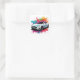 Un auto eléctrico moderno ilustrado digitalmente contra un vibrante salpicón de pintura multicolor, que combina innovación y arte.