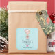 Fabricado con pegatinas de cocina con amor, con un diseño adorable que incluye un ilustracion acuarela. Un globo de aire caliente decorado con flores rojas y rosas bonitos. Un lindo oso bebé blanco se sienta en la canasta. Fondo azul claro.