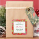 Un pegatina de cocina o de horneado personalizado que lee "De la cocina de vacaciones de" y espacio para tu nombre en escritura verde y letras góticas rojas, con un marco dorado sobre una poinsettia roja y un patrón floral sobre un fondo verde sabio. Para sus Navidades especiales pan, recetas o recetas en un frasco.