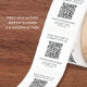Haz que sea fácil para los clientes conectarse con tu negocio en cualquier lugar con estas pegatinas de código QR personalizadas. Ingresa la dirección de tu sitio web para generar tu código QR único. Diseñadas para pequeñas empresas, cafeterías, salones, boutiques y tiendas en línea, estas pegatinas de "conéctate con nosotros" son una forma moderna y sin contacto de compartir tu sitio web, redes sociales, menú o enlace de reserva. Cada pegatina presenta un diseño limpio y minimalista con tu código QR escaneable, nombre del negocio, dirección y número de teléfono. Perfectas para embalajes, sobres, recibos, etiquetas de productos o artículos de regalo. Simplemente despega, pega y deja que los clientes escaneen para conectarse al instante.
