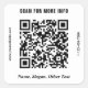 Simple y moderno pegatina de código QR para su empresa u organización. Sube tu escaneado código QR, y personaliza hasta cuatro líneas de texto con tu nombre, lema, etiqueta, sitio web, número de teléfono, etc, o elimina. Puede cambiar el color del fondo y la tipografía seleccionando "personalizar más adelante".