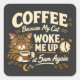Pegatina Cuadrada Coffee Because Cat Woke Me up