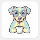 Pegatina Cuadrada Coffee Dog with Glasses – Cute Whimsical Illustrat