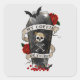 Este ilustracion retro, de moda y único al estilo gótico de un viejo ataúd con un cráneo de rosa roja muestra la frase satírica "Mi ataúd o el tuyo". Es perfecto para los amantes del gótico en Halloween, el Día de los Muertos o sólo días normales.