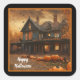 Pegatina Cuadrada Colección Halloween de calabaza de la casa fantasm