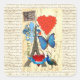 Viejo y romántico collage de París con la Torre Eiffel , París Francia con valentinas rojas adoran los globos cardíacos y la mariposa azul bonito y pájaro pavo real y fleur de lys, sobre un fondo de postal antiguo. Copyright Oconnart.