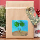 Pegatina en una escena de palmeras tropicales, arena y cielo hechos a partir de un collage digital de acuarelas e imágenes estampadas