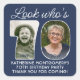 ¡Mira quién tiene 70 años! Añade un toque de acabado personalizado a los favores de la fiesta de cumpleaños número 70, invitaciones y notas de agradecimiento con pegatinas/sellos para sobres de la foto personalizado. Las imágenes y todos los textos de esta plantilla son sencillos para el personalizar. Los colores azul marino y blanco para el fondo, el texto y los contornos numéricos se pueden personalizar utilizando la herramienta de diseño Zazzle. (IMAGEN PLACEMENT TIP: Una manera fácil de posicionar una foto exactamente como quieres es recortarla antes de subir al sitio web de Zazzle. Si necesitas ayuda adicional, por favor envíame un mensaje :) Estos pegatinas presentan dos fotos de tu elección, caligrafía moderna de escritura a mano y tipografía clásica de arte vintage. El diseño neutro en materia de género también es adecuado para un hombre o una mujer. ¡Feliz 70º cumpleaños!
