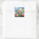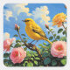 Pegatina Cuadrada Colorful yellow bird and pretty pink roses