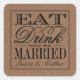 Pegatina Cuadrada Comer, beber y casarse Boda de Kraft rústico