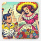 Pegatina Cuadrada Comic De Pareja De Amor Retro