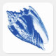 Pegatina Cuadrada Concha de concha turbante, azul índigo y blanco