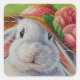 Pegatina Cuadrada Conejo de conejo blanco en primavera Bonnet Waterc