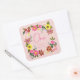 Pegatina Cuadrada Conejo de conejo rosado lindo Chica cumpleaños