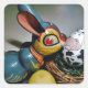 Pegatina Cuadrada Conejo de juguetes y huevo de vaca