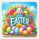 Pegatina Cuadrada Conejo de primavera/Semana Santa con huevo