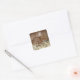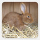 Pegatina Cuadrada Conejo marrón agudo en heno fresco