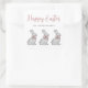 Pegatina Cuadrada Conejo rosa lindo Feliz Pascua