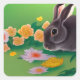 Pegatina Cuadrada Conejo y flores