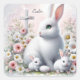 Pegatina Cuadrada Conejos de Pascua, Margaritas y Cruz