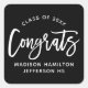 Pegatina Cuadrada Congrats modernos guión de graduación en negro