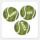 Trío de pelotas de tenis con superposiciones de texto que dicen "Juego, Juego y Partida"