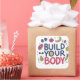 El diseño debería ser alegre, positivo y motivador. La combinación de tipografía suave, adorables adornos y colores claros debería crear una sensación de amor propio y empoderamiento para construir un cuerpo saludable.