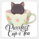 ¡Perfecto para un gato o amante del té! Este diseño presenta al gato negro más lindo sentado en un vaso de té de tamaño excesivo con la frase "Purrfect Cup of Tea" escrita en la parte inferior.