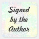 Una etiqueta pegatina para indicar un libro, revista, artículo, foto, etc., tiene el autógrafo/firma del autor/ilustrador/ artista/ fotógrafo.