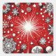 Un bonito fondo rojo rodeado de baudias y copos de nieve al estilo del arte pop
