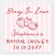 Each sticker can be personalized with the bride’s name and event details, adding a thoughtful custom element that ties your celebration together. The square format offers a clean, modern look that works beautifully on favors, stationery, and decorative packaging.