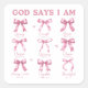Pegatina Cuadrada Coquette Pink Bows Religioso Moderno Que Dios Dice