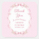 Pegatina Cuadrada Coquette Pink Gingham Bow First Birthday Thank You