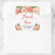 This beautiful and elegant thank you sticker features watercolor coral pink red roses and foliage. The text combines handwritten script and serif fonts for a stylish and modern look. This is perfect for a spring or summer rustic wedding.