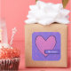 Corazón de aplique rosa en etiqueta de patchwork lavanda. Etiqueta todas tus cosas.