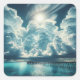 Pegatina Cuadrada Corazón en las nubes sobre el océano