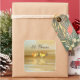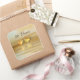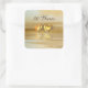 Pegatinas cuadrados con mi diseño original de una simple escena dorada y amarilla con corazones dorados flotando en el agua. El texto del personalizable dice "50 años".