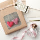 Pegatina Cuadrada Corazones rojos en la mesa de madera 2