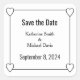 Este sencillo y elegante, salvo el pegatina de cita, presenta corazones románticos en las esquinas y letras claras y sofisticadas.