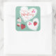 Pegatina Cuadrada Corazones y fresas Feliz Día de San Valentín