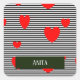 Añade tu nombre en este patrón de corazones rojos y rayas blancas y negras.