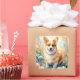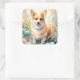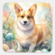 Pegatina Cuadrada Corgi con vacaciones en Pascua