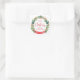 Hermoso sello de sobre o diseño de etiqueta de regalo con atractiva corona de fiestas en tonos verdes y rojos enmarcando la hermosa frase "Feliz Navidad" en una mezcla de caligrafía manuscrita y tipografía de bloque con espacio para el nombre(s), así como texto en la cinta de la corona roja donde puedes agregar tu propio texto (es decir, "FELICES FIESTAS", "NAVIDAD 20XX"...).Colección con productos coordinados
