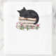 Pegatina Cuadrada Cozy Black Cat Sleeping on Books Sticker