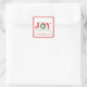 Celebrate the season with this charming sticker. The word "JOY" takes center stage, capturing the heartfelt spirit of the holidays. With a bright red plaid trim, this card blends traditional elegance with rustic charm.