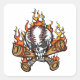 Pegatina Cuadrada Cráneo de Béisbol en llamas